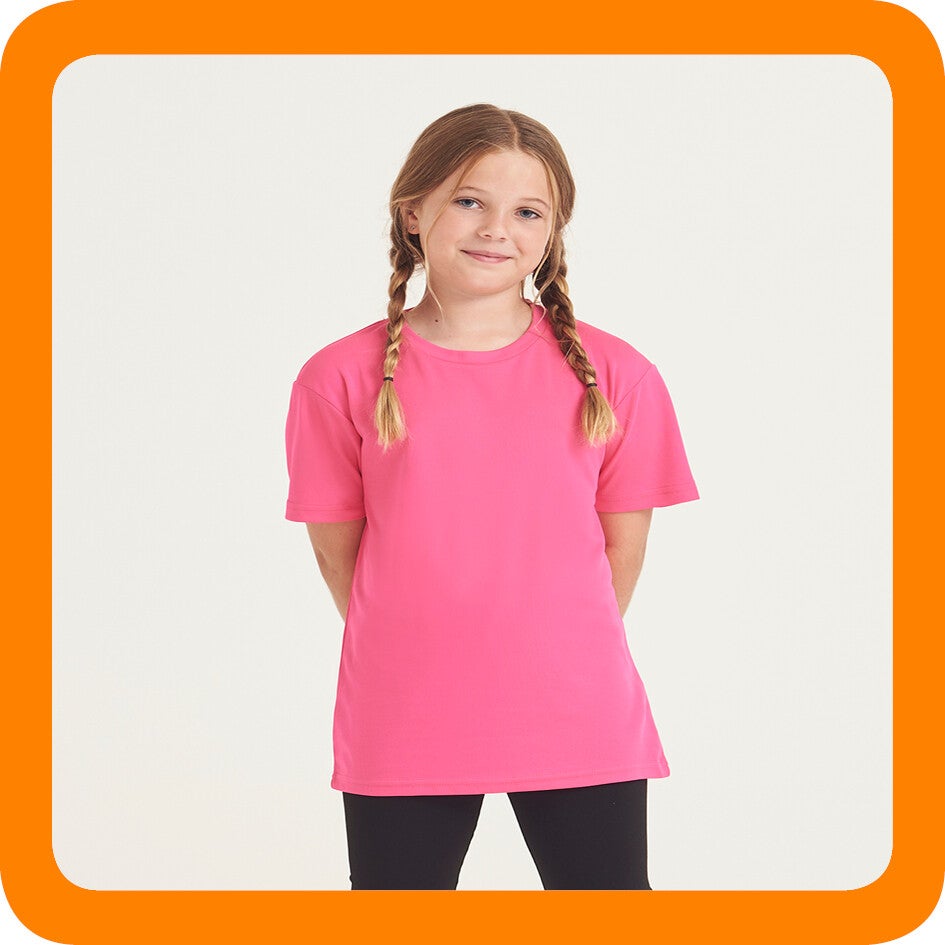 Dit T-shirt van lichtgewicht Neoteric™-stof met een klassieke ronde hals en een relaxte pasvorm is ideaal voor sportdagen op school en biedt UPF 30+-bescherming.