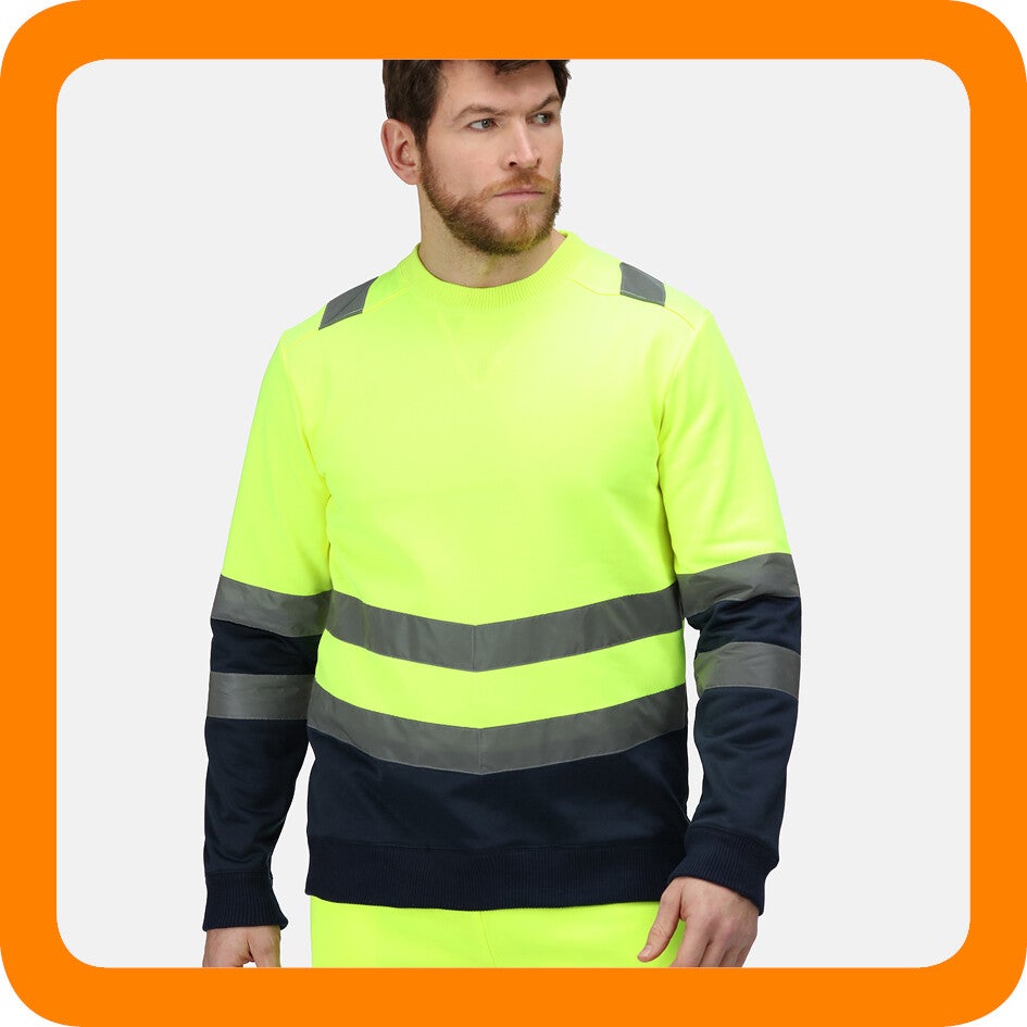 Blijf zichtbaar met dit sweatshirt met hoge zichtbaarheid. Het is gemaakt van een polykatoenmix en biedt het comfort en de duurzaamheid waarnaar u op zoek bent. Het t-shirt heeft geribde manchetten en zoom voor extra bescherming. De richting van de goed zichtbare chevronpijlen geeft aan in welke richting u beweegt bij weinig licht. Voldoet aan EN ISO 20471:2013 +A1:2016 Klasse 2 (oranje voldoet ook aan RIS-3279/TOM)