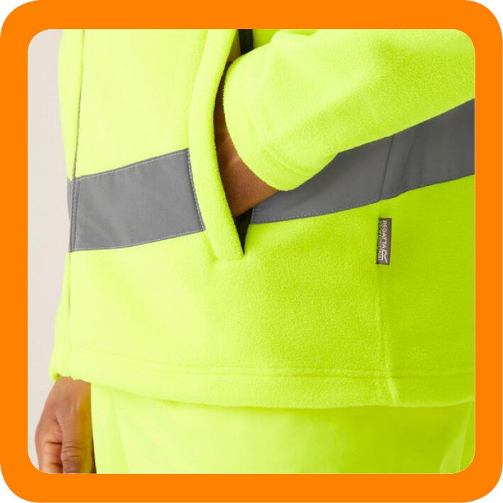 De Pro Contract Hi-Vis Thor Fleece van Regatta Professional levert ongeëvenaard comfort en innovatie. De geavanceerde Symmetry-fleece vervilt niet en zorgt voor een naadloze combinatie van warmte en duurzaamheid voor dagelijks gebruik. Twee praktische zakken voor handige opslag van uw essentials, en revolutionaire ID Reflection-technologie verbetert de veiligheid in omstandigheden met weinig licht, waardoor uw positie gemakkelijk zichtbaar is voor collega’s.