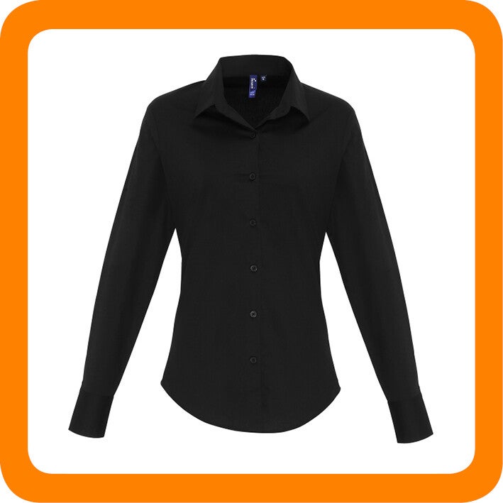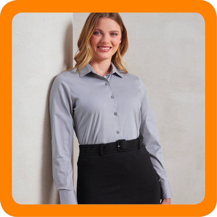 Katoen gecombineerd met elastaan zorgt voor een superzacht, rekbaar en comfortabel aansluitend shirt voor dames.