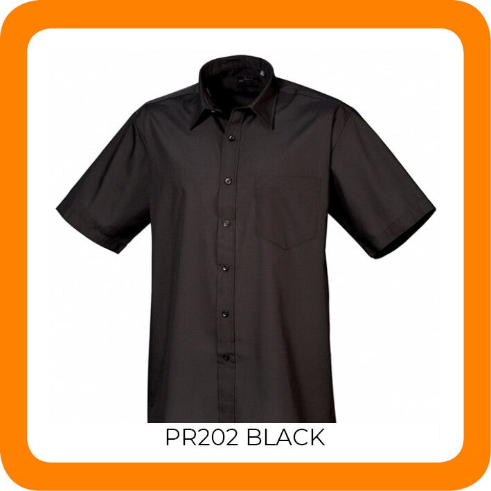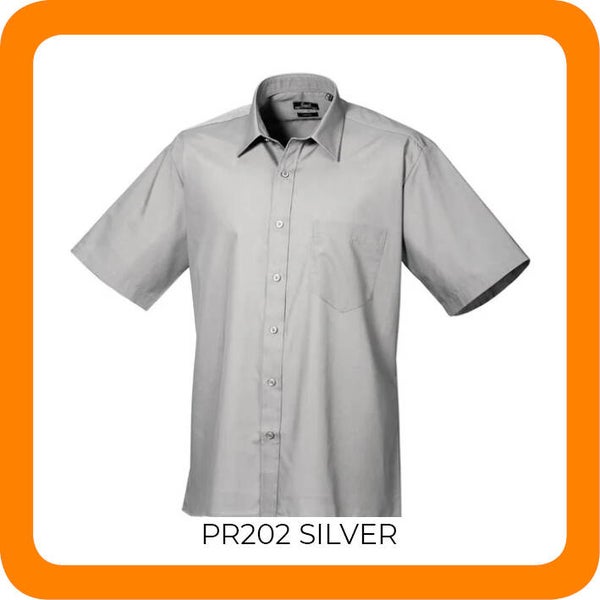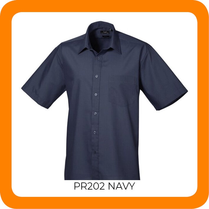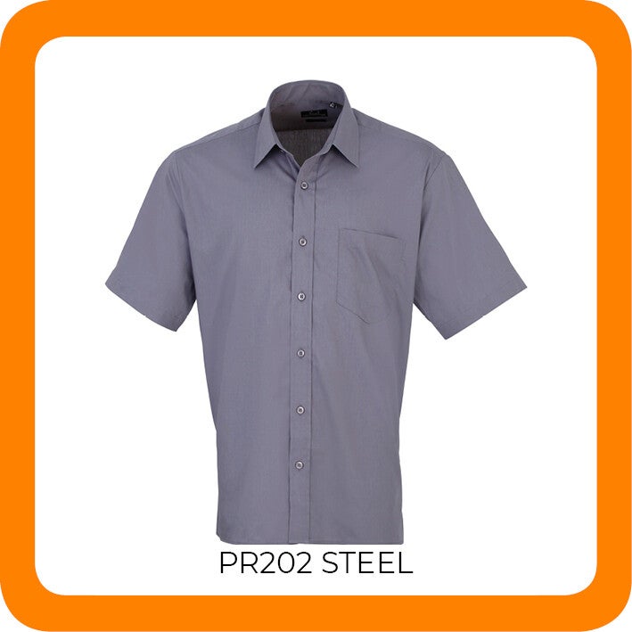 Een Poplin-werkoverhemd met korte mouwen voor heren, verkrijgbaar in 9 kleuren uit de 'Colours Collection' van Premier. Dit overhemd met klassieke pasvorm heeft een stijve, formele kraag waarin een stropdas past en het lijf heeft een handig borstzakje aan de linkerkant.