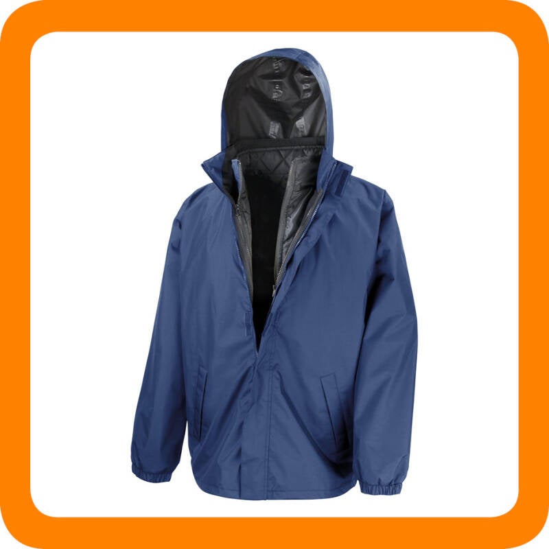 Praktisch 3-in-1 met een twist, lichtgewicht, waterdicht en voorzien van een stijlvolle bodywarmer aan de binnenkant.